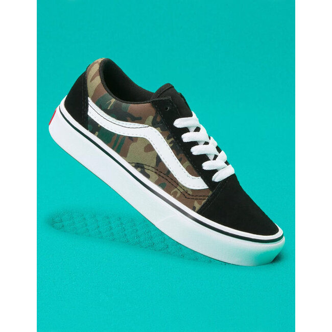 Vans Autism Awareness ComfyCush Old Skool Shoes. The Old Skool has never been lacking in the attitude department. It brought the dawn of the classic Vans side stripe that has developed into a status symbol of tradition and skate stature. Aside from all that personality, they have lasted as long as they have because of their ability to perform on a skateboard, and to last, and last. Allover checkerboard print with velvet heart details, and text screened at back. Comfycush footbed. Canvas upper. Padded collar. Rubber waffle outsole. Imported.
