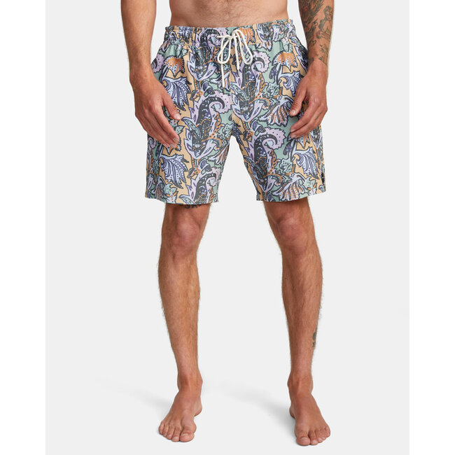 Built for the bold, the RVCA Daily Elastic Swim Shorts 17” featuring a custom, all-over print that’ll get you noticed, in or out of the waves. Made from recycled polyester blended fabric with 4-way stretch, these men’s boardshorts are constructed with an elastic drawcord waist, side pockets and back pocket for all your needs.