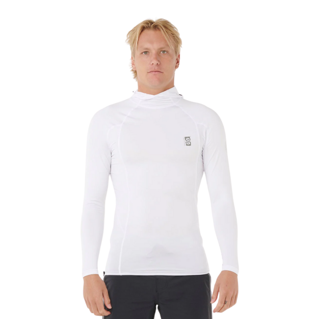 Designed for serious surf days, this performance-fit rash vest offers UPF 50+ sun protection with a secure, locked-in feel. Neoprene and shock-cord hems keep it firmly in place, while the foam visor adds extra protection against glare and spray.
