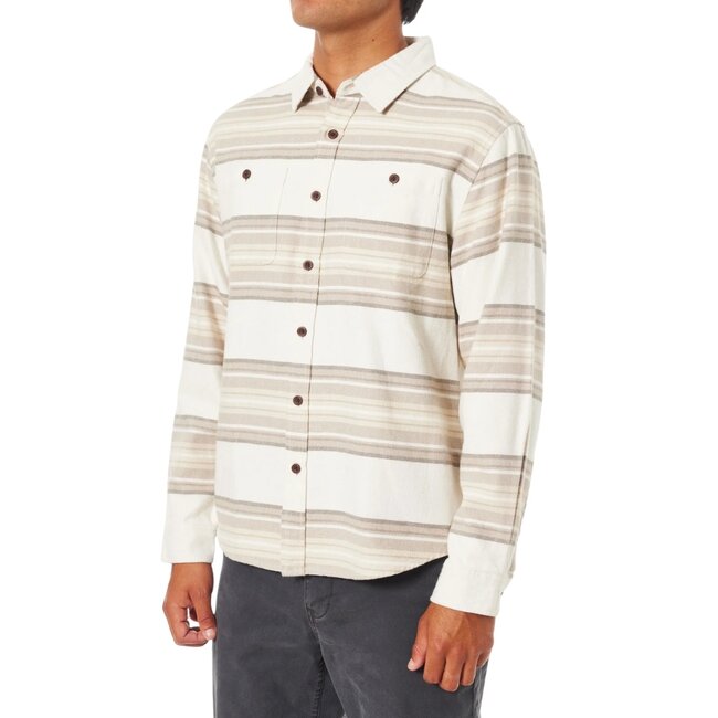 The Sierra Flannel Shirt is a rugged yet refined staple crafted for comfort and durability. Made from 100% cotton stripe flannel, this midweight button-down is perfect for layering through cooler seasons or wearing on its own. Designed with classic utility in mind, it features front chest patch pockets and practical side welt pockets for added function. The striped plaid pattern adds a timeless aesthetic, while the soft flannel shell provides warmth without the bulk. Whether you’re heading out for a weekend adventure or dressing for crisp mornings, the Sierra Flannel delivers everyday versatility with a worn-in, coastal vibe.